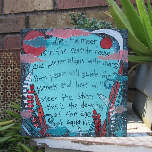 The Age Of Aquarius Lyrics Painting On 8 By 8 Wood Etsy